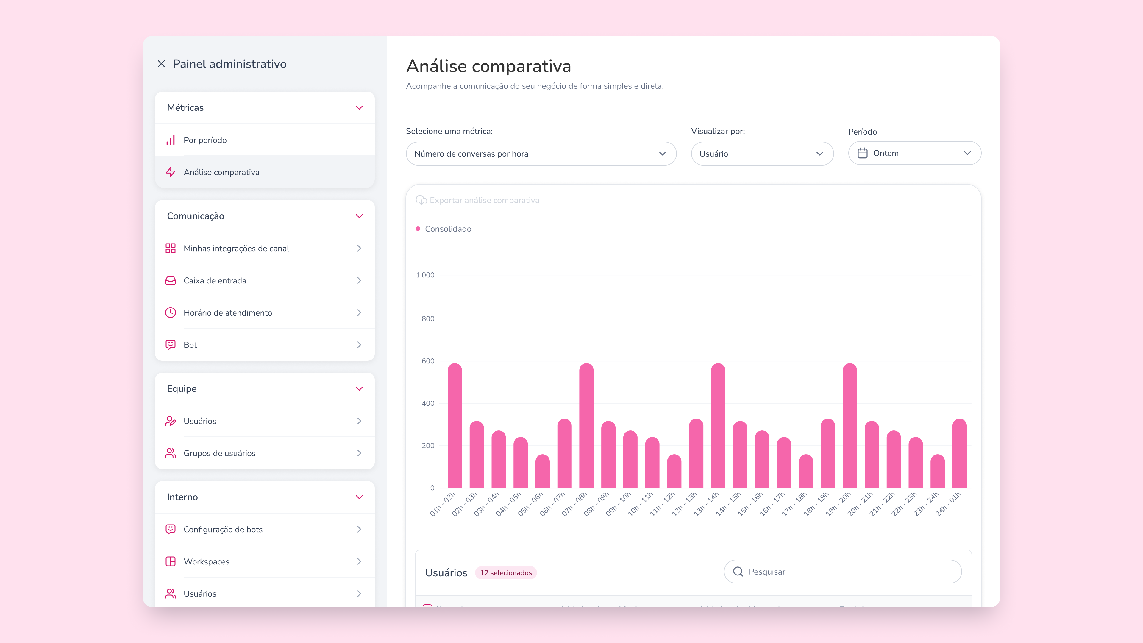 Atualmente, a métrica disponível para comparação é o número de conversas por hora.